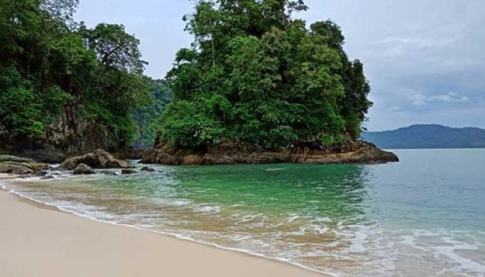 Untuk mencapai teluk ini, Anda harus melakukan trekking ringan melalui hutan, menambah sensasi petualangan.